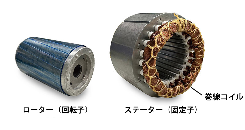 - ローターの磁場がステーターの磁場と相互作用し、ローターが回転します。