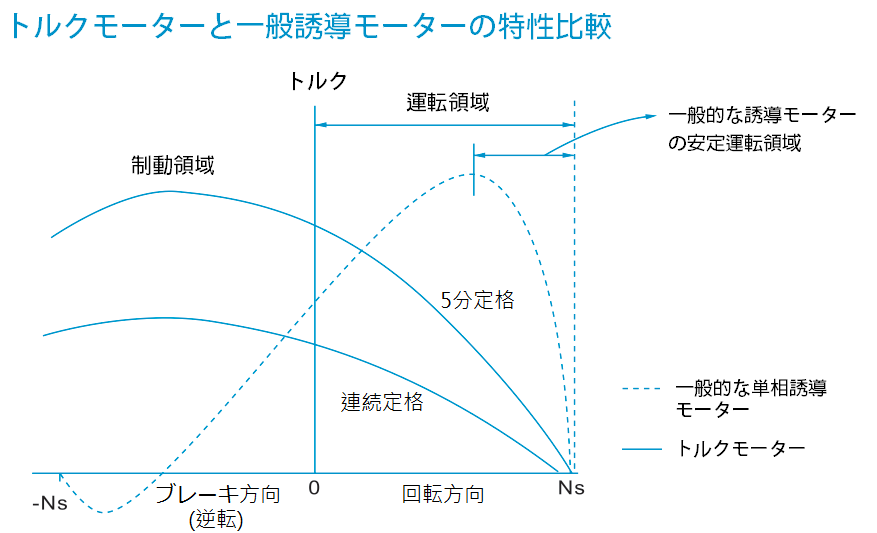 トルクモータと一般誘導モータの比較