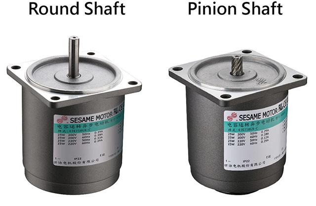 There are two types of output shaft of the AC standard motor: the round shaft and the pinion (geared) shaft, only the motor with pinion shaft can be assembled with gearhead (speed reducer). Depending on the model of the motor and the gearhead, the combination can be done when the model of the "frame size" and the "shaft type" are the same. Therefore, check the model of motor and gearhead before ordering and installing. If motor and gearhead do not mesh smoothly, tune the gearhead slightly left and right while assembling.