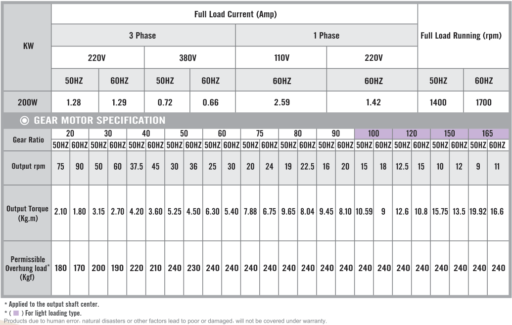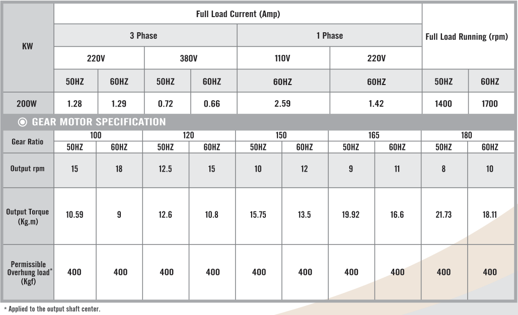 G13H200, Output 200W (1/4 HP)