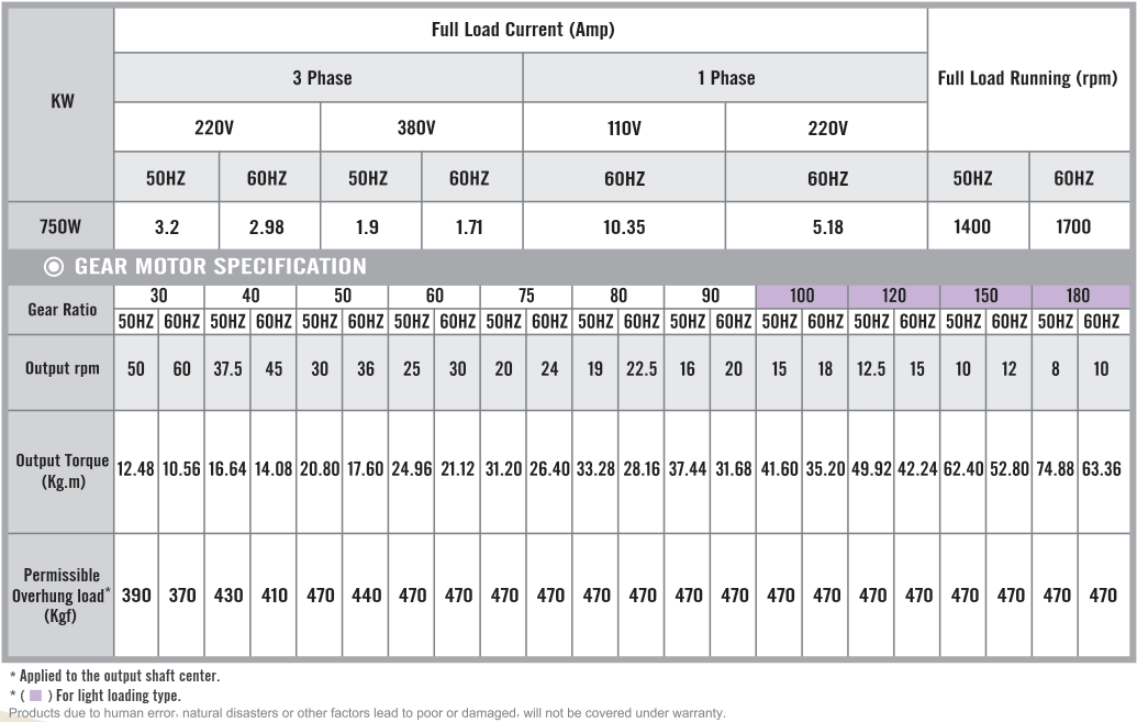 G13H750, Output 750W (1 HP)