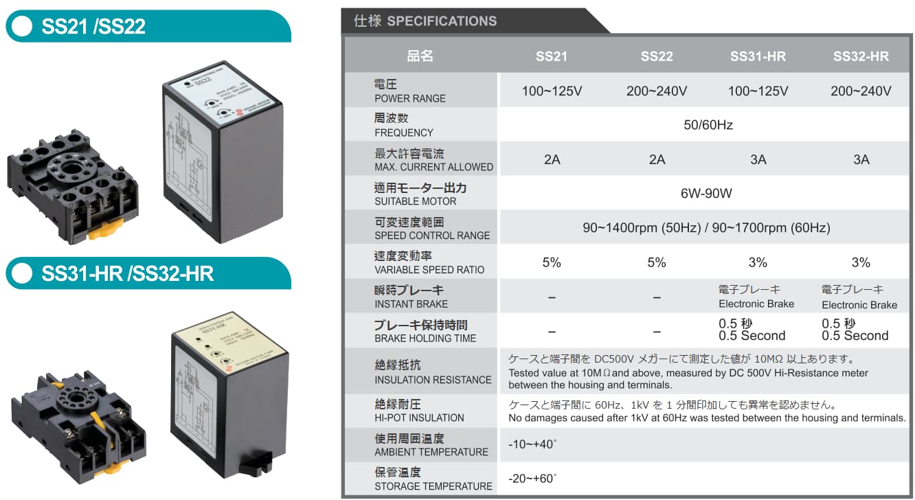- 電子ブレーキ回路付き、急制動機能あり (SS31-HR & SS32-HR)