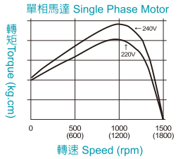 備註:4極馬達在頻率50Hz時,同步轉速為1500rpm。在60Hz時為1800rpm。